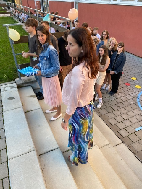 Celá ceremonie byla doplněna stužkováním našich nejmladších žáčků. Slavnostní stužku jím předali naši deváťáci.