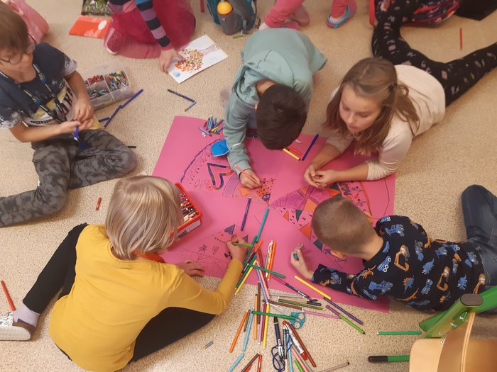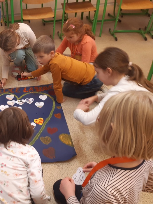 Celý podzim jsme pracovali s laskavým kalendářem, díky němu jsme každý den plnili jednu laskavost. Metodické listy z Hodnotového vzdělávání byly plné úkolů a díky tomu bylo snadné zjistit, co to ta laskavost vlastně je. Protože je naše laskavost směřována na pomoc zvířatům, věnovali jsme se i jim - v rámci Mezinárodního dne zvířat jsme malovali a popisovali oblíbené zvíře a naši péči o něj. Vysvětlili jsme si, jak může balíček pomoci vypadat a společně jsme vytvořili celou sbírku.